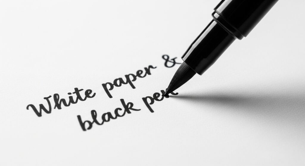 まずはこれだけ!真っ白な紙に、少し太めの黒ペン(マッキーや筆ペン)で書くのが、デジタルに取り込んだ時に一番綺麗に仕上がるコツです。