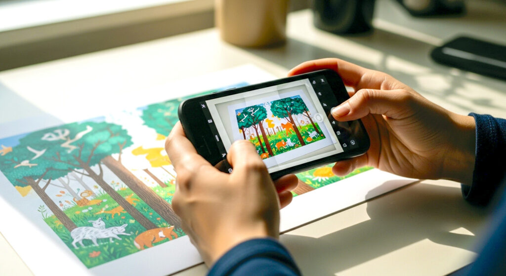 - 素材をアップロード:手書きのイラストや紙の質感を写真として取り込みます。