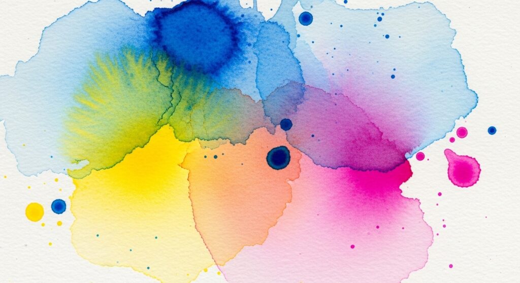 画用紙に水を少し多めに含ませ、絵の具をポタッと落とすだけで自然なにじみが生まれます。乾燥後にスキャンすれば背景素材として使えます。