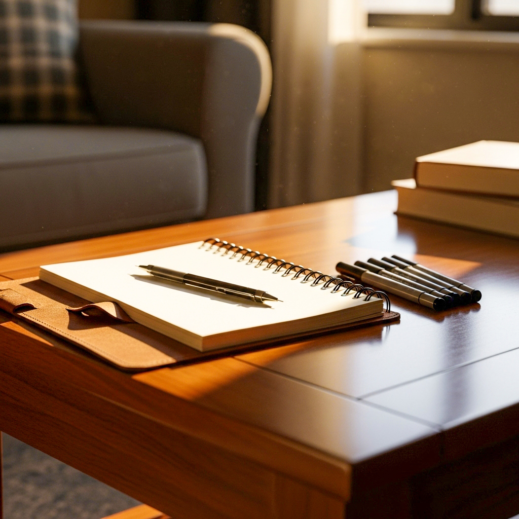 - テーブルの一角にスケッチ用のノートと筆記具を常備する