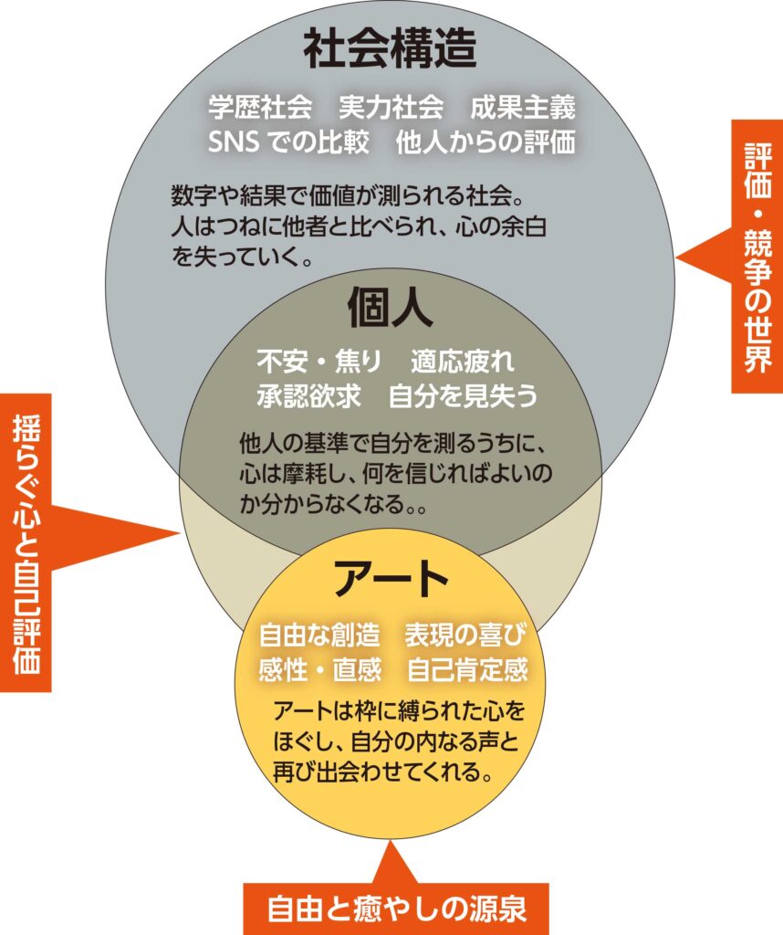 自己肯定感は、他人が決める評価ではありません。自分自身をしっかり受け入れること(自己承認)によって育まれます。アートは、この自己承認を自然に、かつ強力に後押しします。