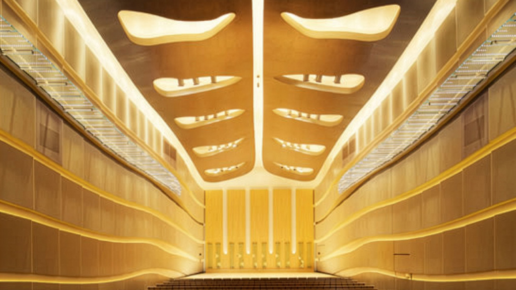 世界で初めてコンサートホールにリクライニングシートを導入したことで話題になりました。