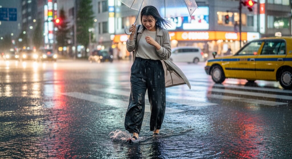 レインシューズや防水スニーカーを選ぶことで、足元の不快感を大きく軽減できます。