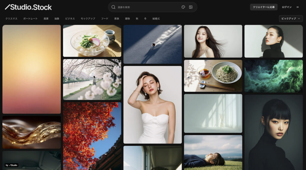 2025年11月から開始されたAI生成による高解像度・高品質な写真素材を提供する新しいフォトストックサービスです。最大の特徴は誰でも無料で利用が可能なこと。商用利用も可能で、クレジット表記は不要。